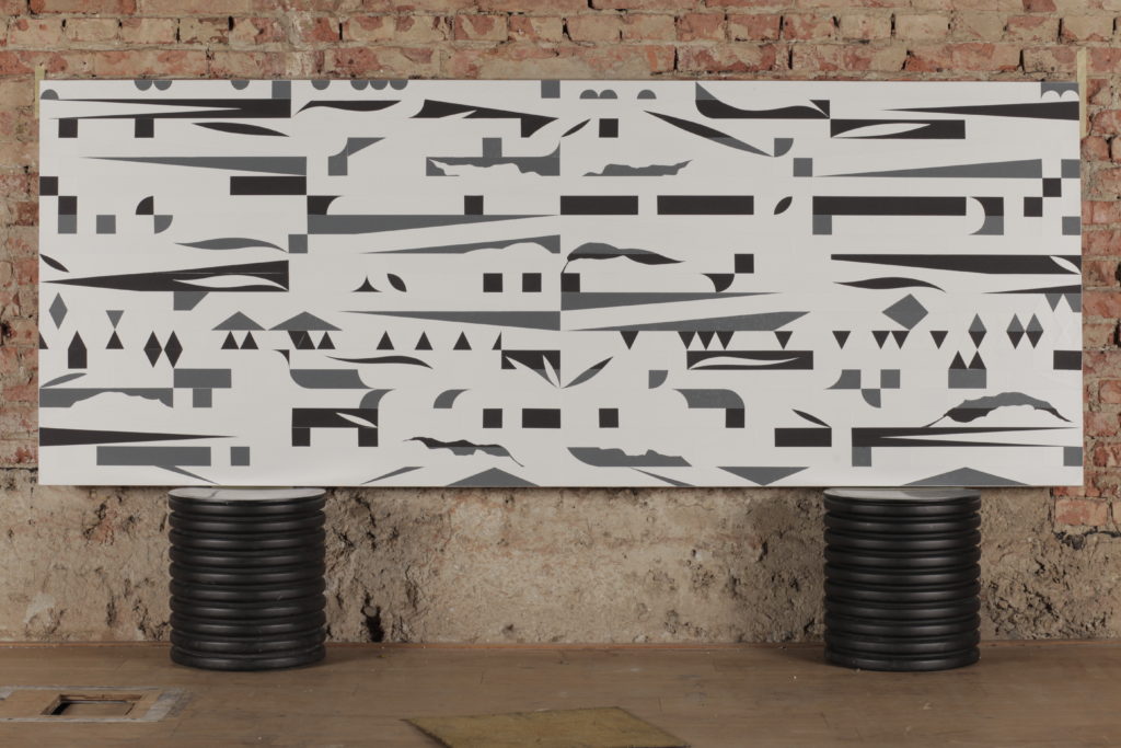 Damir Sobota, Palindrom 6, 2/3, 2019, collage, paper on canvas, varnish, 100 x 270 cm, courtesy the artist