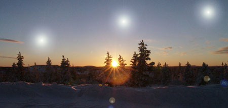 Due to rotation of the Earth’s axis, during the winter the area above the Arctic Circle keeps rotating without being exposed to the sun; in that position the sun rays do not illuminate the ground, but they pass above it.