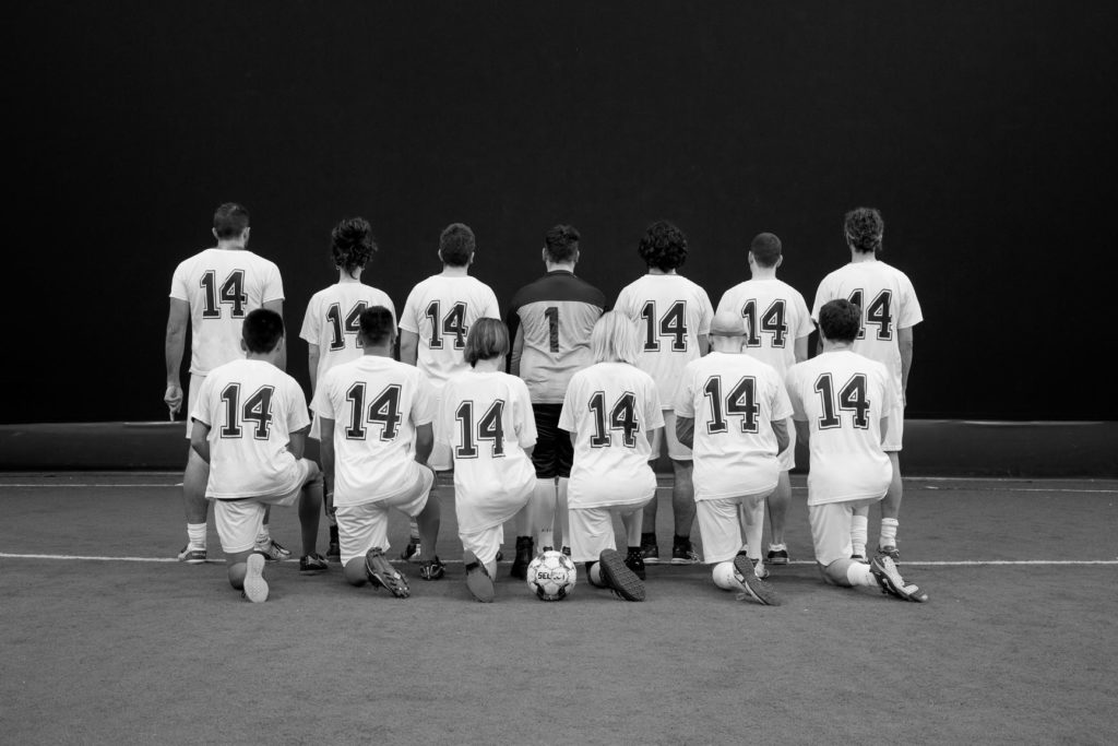 The title “I don’t care (about football)”, inspired by the words of a girl from the facility, suggests that the game is not an end in itself, but a practice of social inclusion and integration. In fact, the team is made up of people with psychiatric disorders together with workers and supporters. All players wear the number 14 of Johan Cruijff, the legendary Ajax player, one of the most emblematic representatives of total football. The uniforms, all identical, symbolize not only a way of being on the field and a style of play, but a broader way of thinking, critical of rigid identities and trusting in the possibility of taking and changing roles on the field and in society.