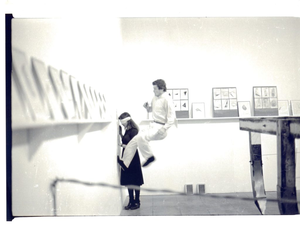 Photograph by Gabriella Cardazzo: Paul Neagu in a moment of his Hyphen-Ramp performance at the Serpentine gallery, London, 1976