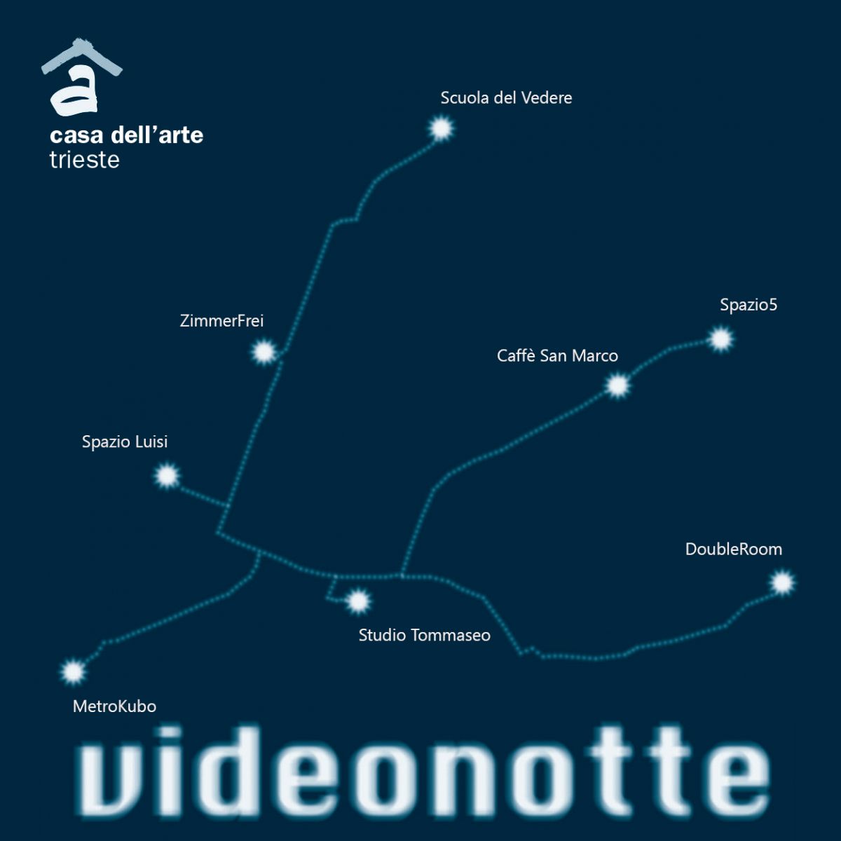 L’iniziativa presenta ben 12 video italiani e internazionali che trattano il tema della luce nelle sue infinite declinazioni e si sviluppa nelle sedi storiche delle 12 associazioni aderenti disseminate per tutta la città. Nell’ottica di una cultura diffusa che parte dal basso, VIDEONOTTE intende evidenziare così la forza dell’associazionismo che si occupa di cultura contemporanea a Trieste snodandosi in ben 8 spazi disseminati in tutto il centro storico della città.