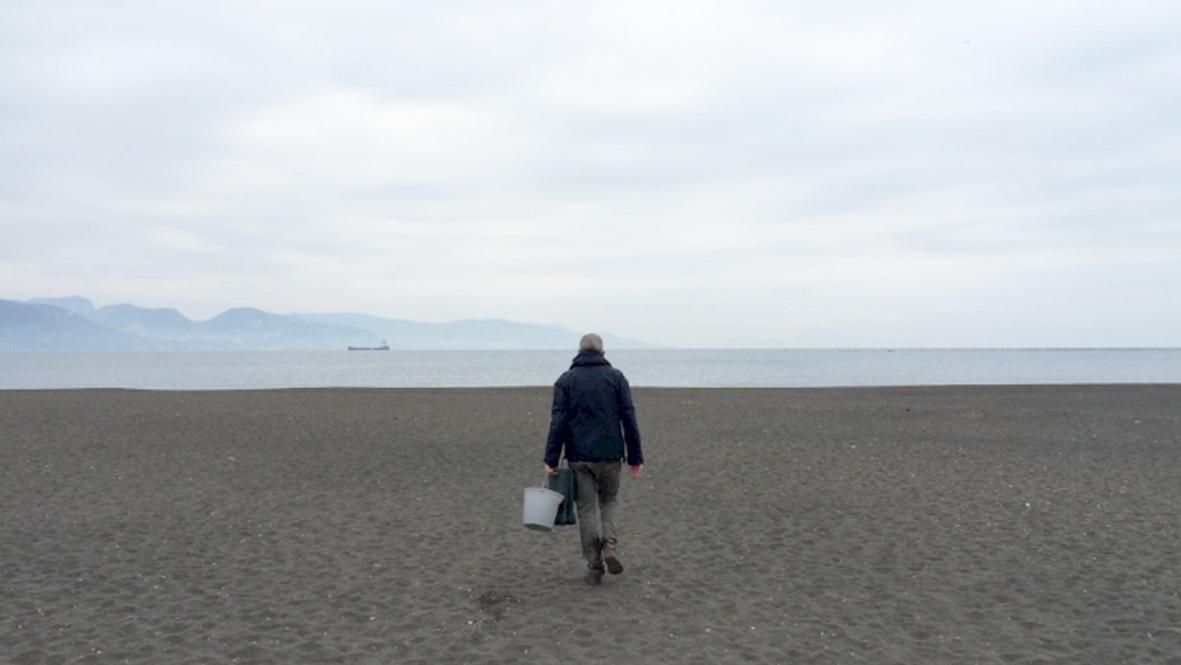 Il video, nato durante la corrispondenza con la poetessa libanese Laure Keyrouz, documenta l’azione fatta a Napoli il 1. Gennaio 2016. In linea d’aria, la distanza approssimativa tra le spiagge di Napoli e Beirut è di circa 2.000 Km., chilometri che diventano circa 3.800 se ci muoviamo in direzione Est ed 8.500 se ci muoviamo in direzione Ovest. Svuotare il mare ridurrebbe, di fatto, le distanze.